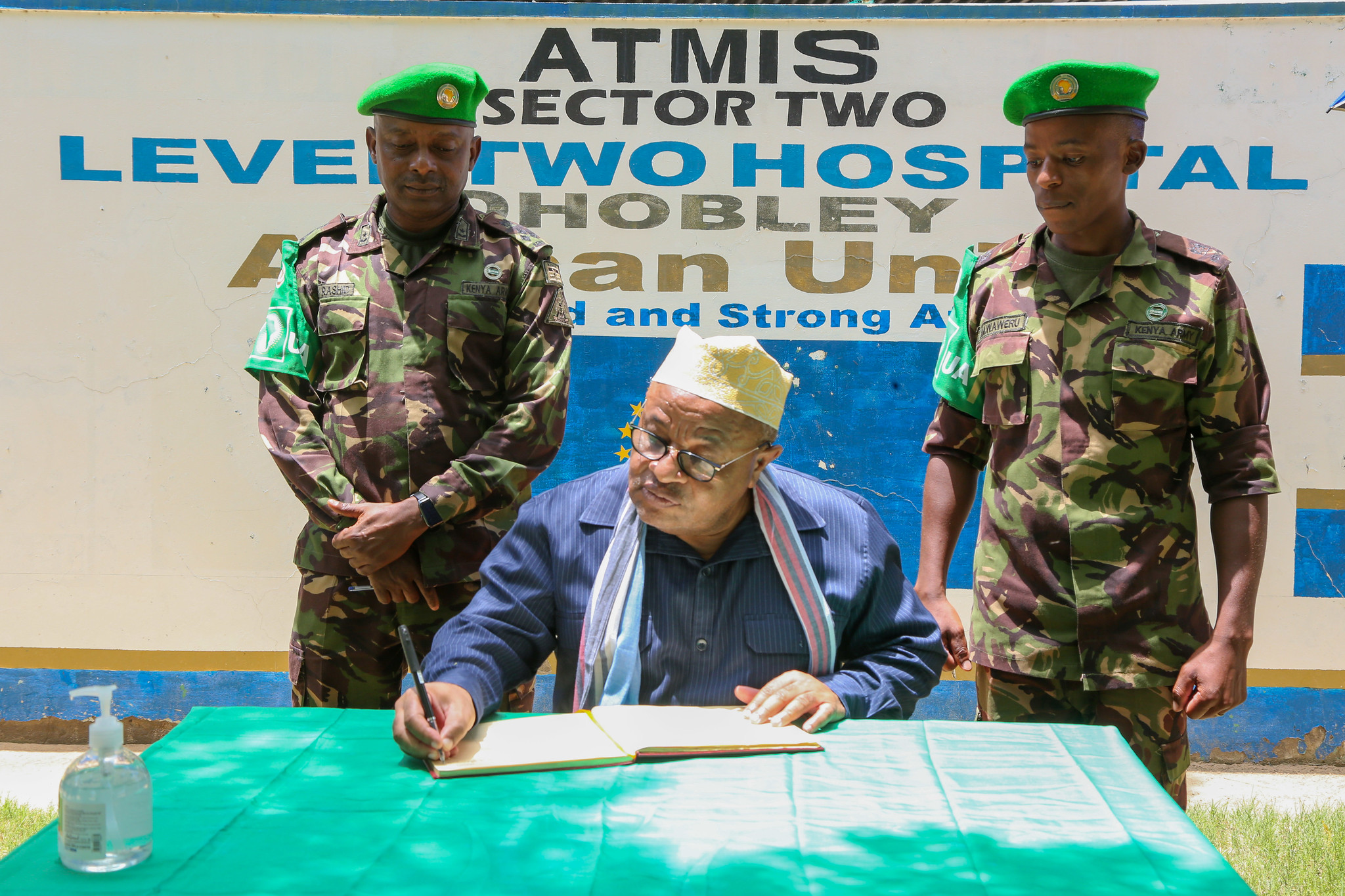 La délégation a été chaleureusement accueillie par le Commandant du Secteur 2 de l’ATMIS, le Général de Brigade Seif Salim Rashid et son équipe. Au cours de la visite, la délégation a également été informée d’un programme de formation médicale lancé par le contingent kenyan de l’ATMIS pour former et encadrer les agents de santé somaliens. L’initiative vise à renforcer les capacités des agents de santé de l’hôpital général de Dhobley en matière de sages-femmes, de salle d’opération et d’interventions chirurgicales, ainsi que d’autres essentiels protocoles de soins de santé.